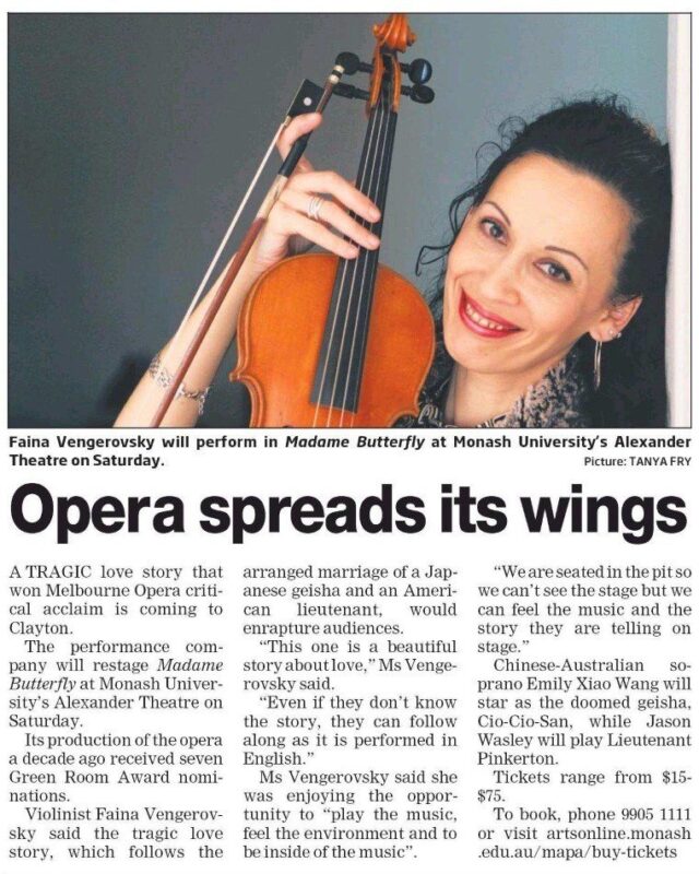 • First Violin – Melbourne Opera Orchestra (2006–2018)